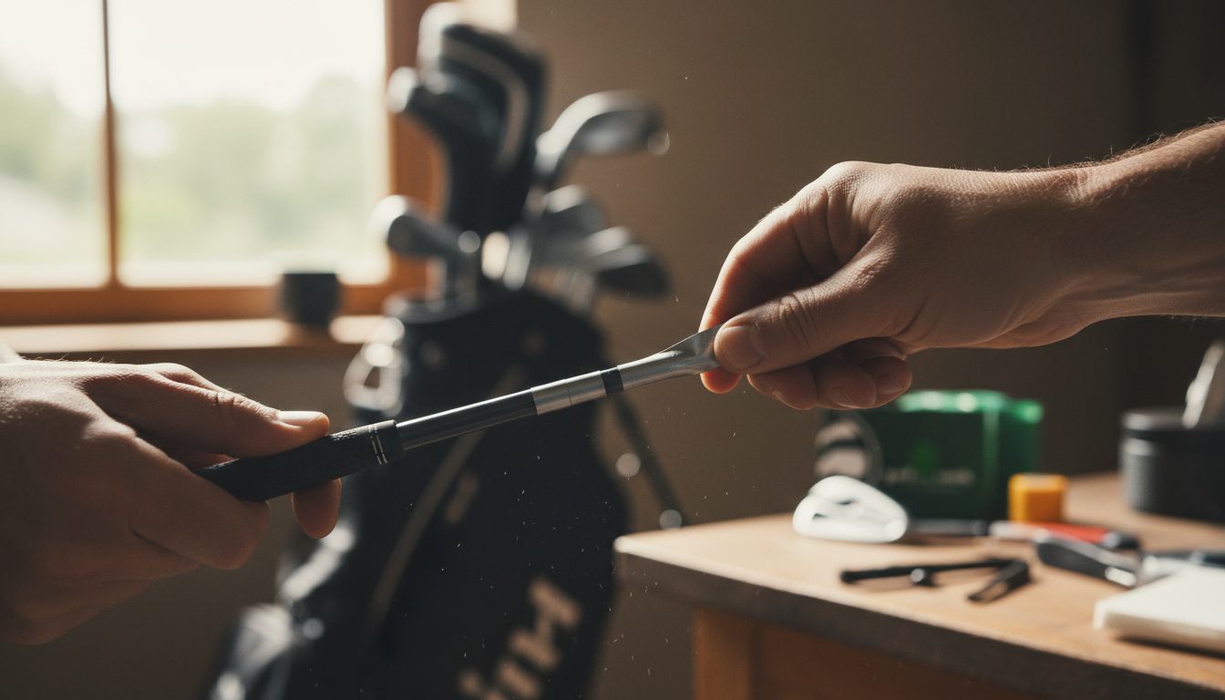 まず、貼る位置を決めます。グリップのすぐ下、シャフトが見えている部分に貼るのが一般的です。プレー中に気にならないように、アドレスした時に見えないシャフトの裏側に貼ると良いでしょう。次に、シャフトを清掃・脱脂します。鉛を貼る部分をパーツクリーナーやアルコールで綺麗に拭き、油分や汚れを完全に取り除きます。これを怠ると、スイングの衝撃で鉛が剥がれてしまうことがあるので、丁寧に行いましょう。